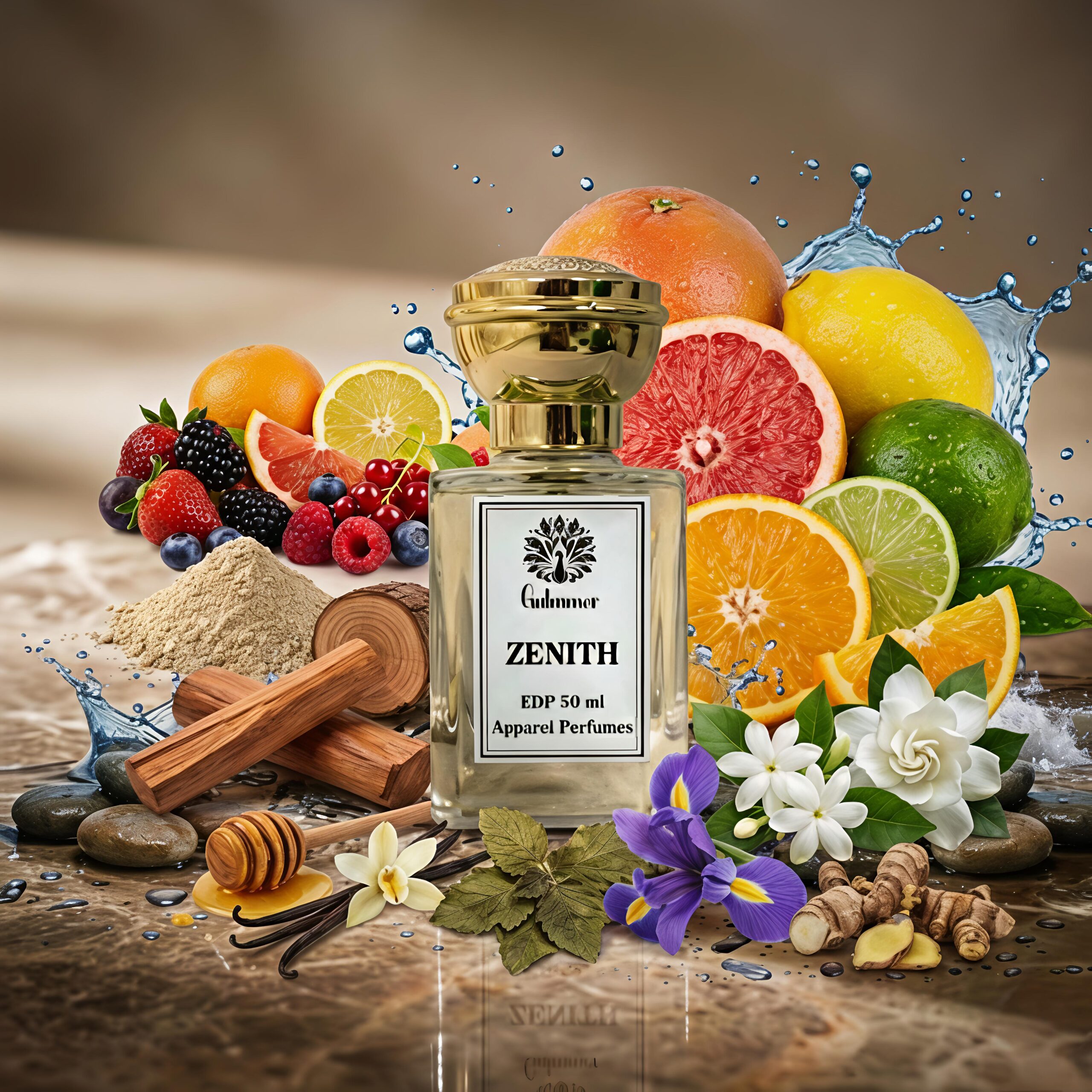 The fragrance opens with crisp citrus and spicy accords, leading into a heart of amber wood, jasmine and settles into a deep musk and oud base that lingers with warmth and strength. Zenith is your signature of dominance — refined, bold and unforgettable.